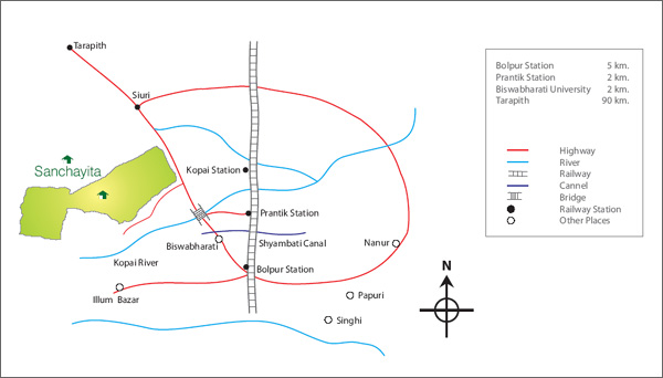 Sanchayita, your dream home on the bank of river Kopai is located amidst wonderful natural surrounding. While staying here you can feel the mud… and touch the nature… The project is set amidst the vast rustic red landscape, rain fed rivulets and patchy forests.